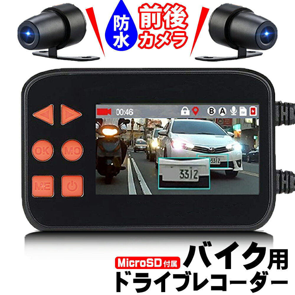 送料無料!バイク用 ドライブレコーダー 前後カメラ 前後同時録画 防水カメラ 超広角260℃ 2.7